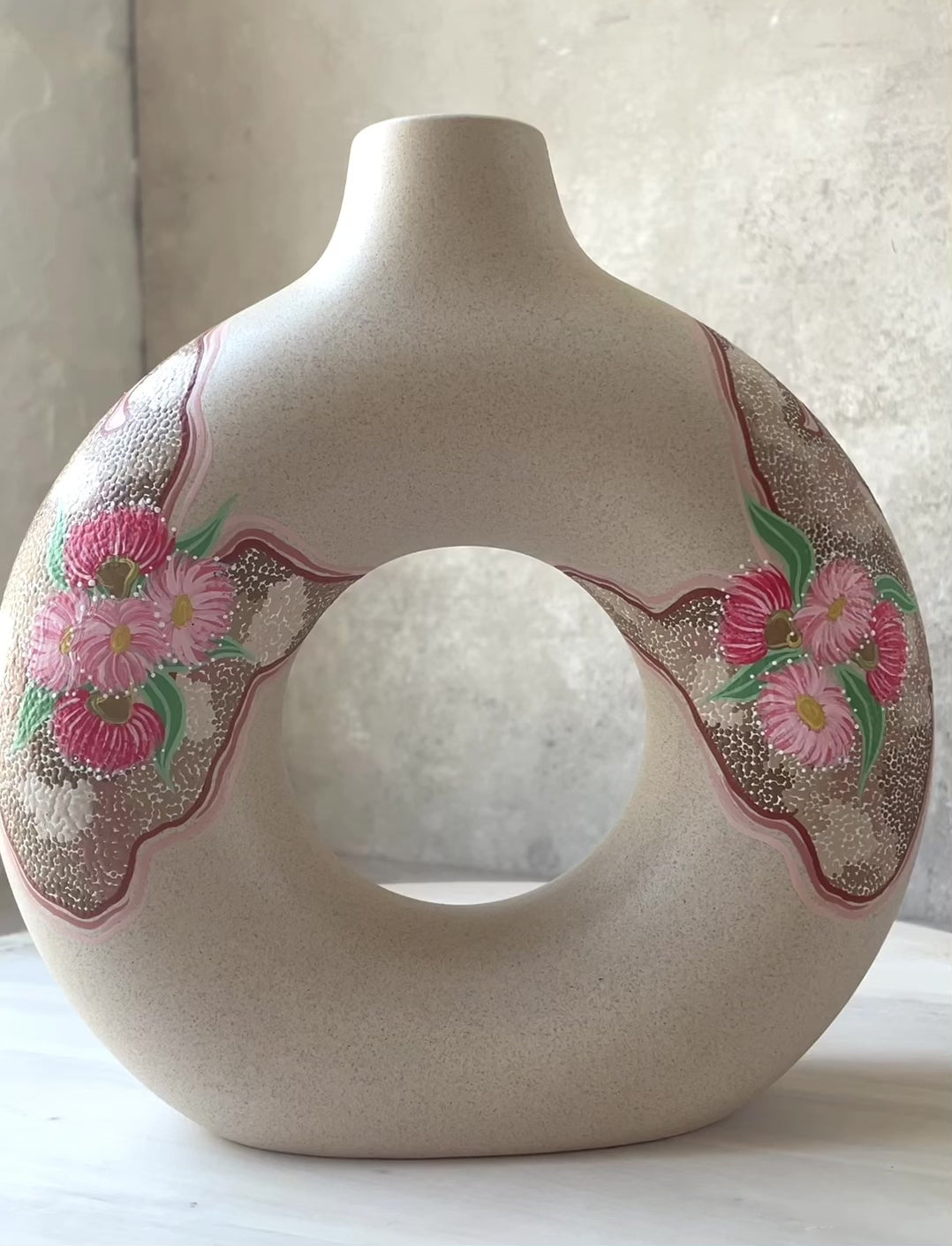 Healing Hands comes in a large ceramic vase from H & M Home, hand-painted by Chynna Chadderton. The design depicts two hands with gum tree leaves and flowers coming out of them. This symbolises healing, purifying and cleansing of a person's mind and soul.